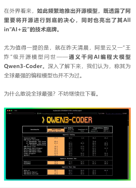 目前可以预见的是,当Qwen3-Coder极大提升编程效率后,那些能够与AI产生联系的行业,其生产力将得到巨大释放,行业面貌或将焕然一新。