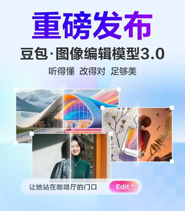 豆包图像编辑模型SeedEdit 3.0显著优化了指令遵循能力、图像保持能力、图像生成质量,优化了“动嘴P图”的效果和效率,可广泛应用于影像创作、广告营销、游戏宣传等领域。